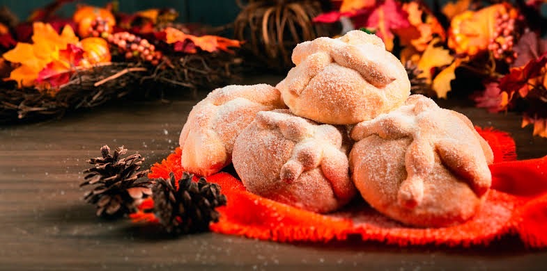 メキシコでは先生も生徒もみんな仮装して学校に行ったり、ハロウィン(死者の日)などの期間のみ発売される、pan de muertoというパンがあります!!