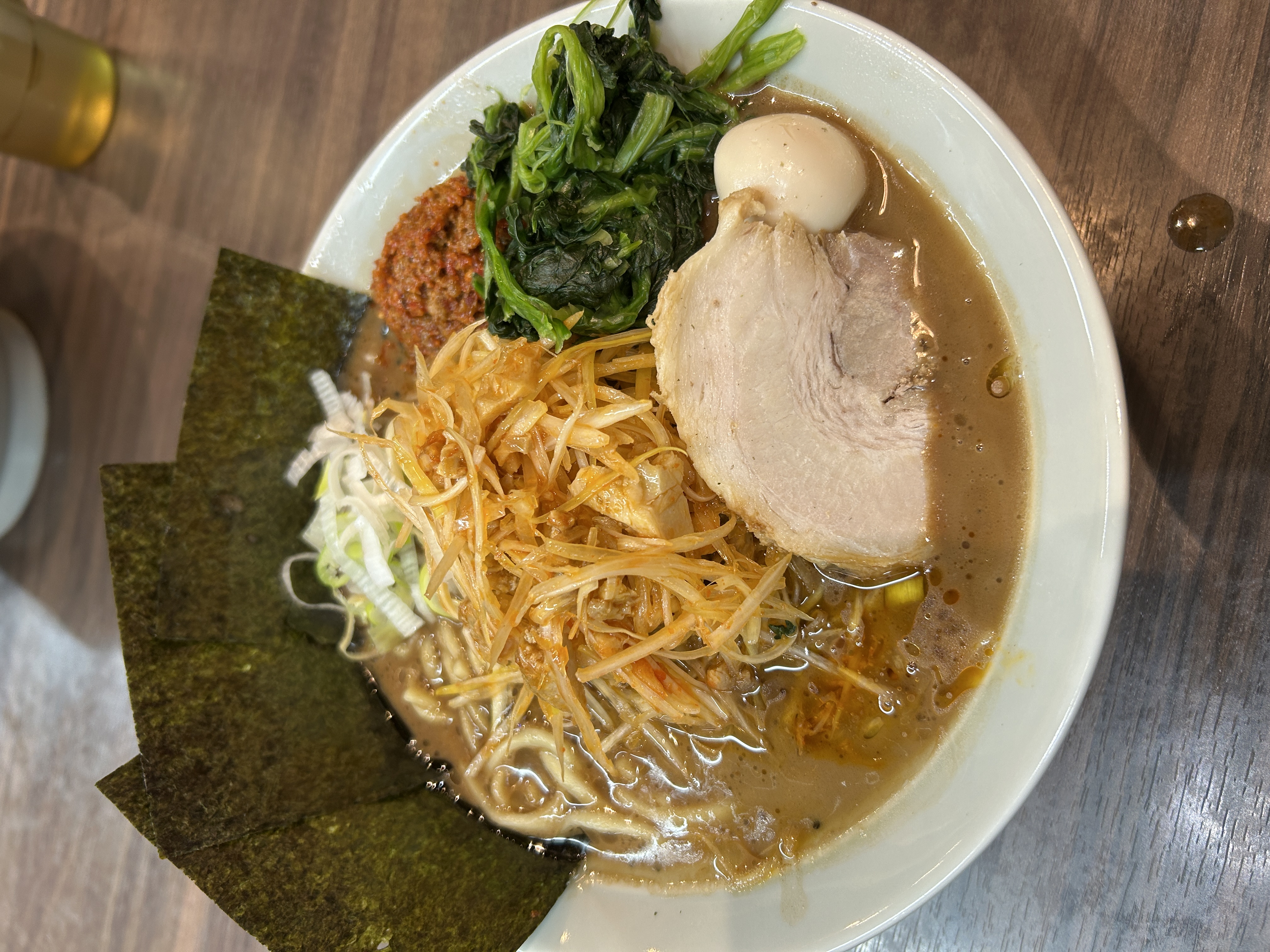なんかつっちーさんにまずそうとか言われたけどめちゃくちゃ美味しいです、黒胡椒味噌、辛肉ラーメン白髪ネギトッピング最高すぎる😭